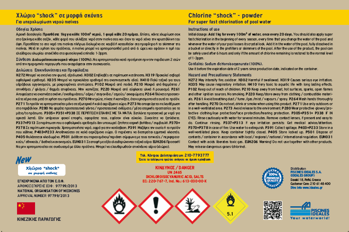 Σε μορφή σκόνης. Για υπερχλωρίωση νερού πισίνας.